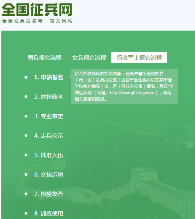 2、完成网上报名后,请密切关注网上审核结论,跟踪掌握应征报名进展情况,保持通信联络顺畅,根据应征地兵役机关通知要求参加应征。