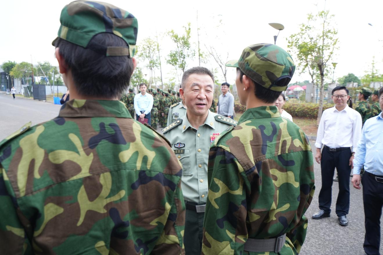 南昌警备区司令员封晓冰一行来校督导检查学生军训工作