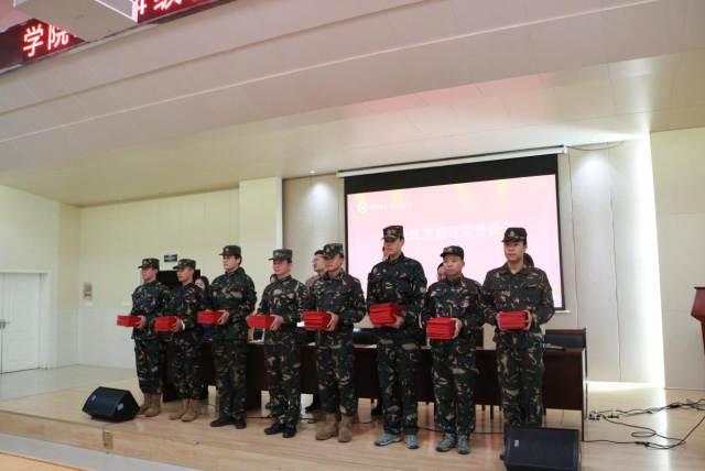 在会上,武装部王志鹏老师在会上宣读《关于表彰优秀教官的决定》。与参会老师为教官们颁发荣誉证书。